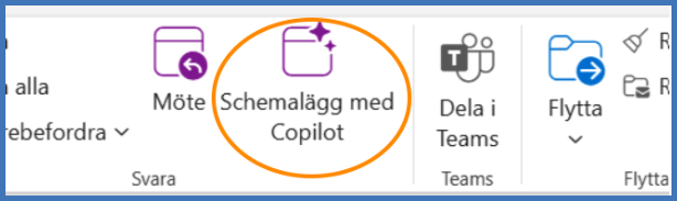 • Klicka på ”Schemalägg med Copilot” i verktygsfältet.